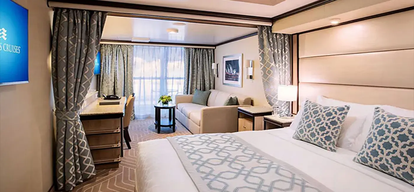 Surrounding you with deluxe accommodations, a spacious Suite with balcony includes all the amenities of a Reserve Collection Mini-Suite^^, plus exceptional extras. Enjoy more living space, a sofa bed,, and separate seating areas, along with enhanced amenities that range from priority disembarkation to a complimentary in-suite mini-bar setup, and much more.