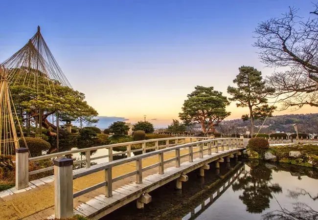 The capital of the Ishikawa Prefecture, Kanazawa, once rivalled Kyoto and Edo (Tokyo) as a town rich in cultural achievements. Kanazawa escaped destruction during World War II, and accordingly, it has been able to preserve many of the old districts in good shape. The city is famous because of Kenrokuen. Located next to Kanazawa Castle, Kenrokuen is classified as “One of the Three Gardens of Japan”. The garden features an artificial pond, as well as hills and houses scattered throughout its 11.4 hectares. It has Japan's oldest fountain using natural water pressure and a teahouse dating back to 1774. Close by is the Higashi Chaya Gai Geisha District, designated a National Cultural Asset and the biggest of the Geisha districts of Kanazawa. Some of the houses not only retain the original structure but are still used as Geisha houses. Some of the streets have traditional shops, creating a nostalgic atmosphere. Kanazawa is also known for its lacquer ware, Kutani-style pottery, gold-leaf workmanship, and delicately painted silk kimonos.